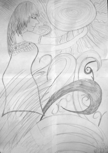 Ich habe versucht, einen weiteren Schwerpunkt des Jugendstils zu fassen und geriet an Alphonse Mucha, von dem mir einige großformatige Reproduktionen bekannt waren. Wer einen wehenden Chiffon-Stoffschal oder gar -Kleid kennt, wird sehr leicht Zugang zu Mucha finden.