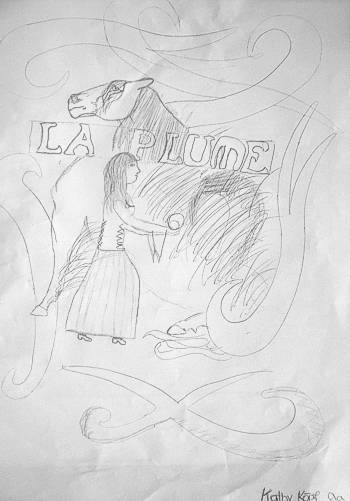 Alphonse Mucha ist auch im Zusammenhang mit Sarah Bernhardt zu begreifen. Ich habe wegen Mucha, bei dem der Lust betonte Faltenwurf und das Spiel dieser Formen am deutlichsten hervor tritt, in einer Art „Werkzeugkasten“ seine Formbewegungen spielerisch nachempfunden. Die Skizze: