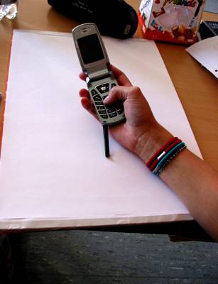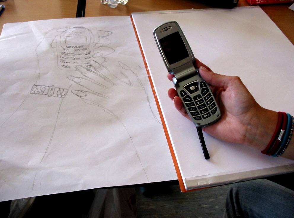 Auffällig war mir das bildnerische Problem der drei Schüler, mit dem Sachgegenstand des Handys umzugehen. Mit welcher Leichtigkeit nimmt man das Handy zum Herstellen eines Gesprächskontaktes und hat den Gesprächspartner sofort am Apparat.....